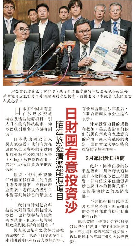 サバ州では日本からの投資と日本人観光客の誘致に州を挙げて取り組んでおります。