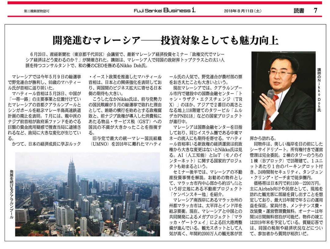 こうした中、フジサンケイビジネスアイではサバ州への視察ツアーを実施、サバ州首相との 日本企業投資誘致など活発な意見交換会を行って参りました。