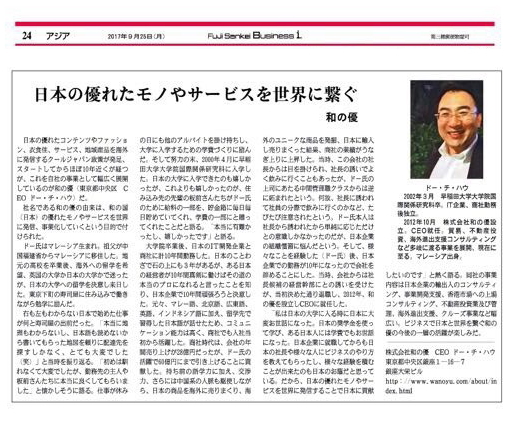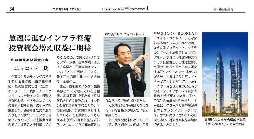 株式会社和の優グローバル CEO Nikko Doh氏 早稲田大学大学院卒業。国際ビジネスコンサルタントとして、日本、マレーシア 香港を主な拠点にビジネスを展開している。歴代マレーシア政権との強い人脈 を武器にどこよりも早くマレーシアの国策情報や経済情報等を入手し、 様々なコンサルティングを行う。 華僑としての強いネットワークも併せ持ち日本企業の香港上場へのサポートや 販路拡大等のサポートを行う。不動産ビジネスにも精通し自らも有望な不動産を 多数購入し顧客への投資アドバイスを行うことに定評がある。