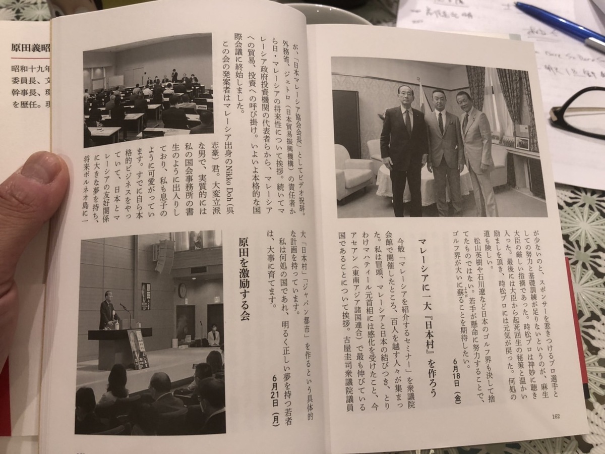 先日は第二衆議院会館、原田昭義事務所へ打ち合わせしてきました。 原田昭義前環境大臣の本をいただきましたので早速、本日は原田父ちゃんの本を読ませていただきました。 原田父ちゃんの本の中に私のことを記載していただきましたので非常に光栄でございます。 日本とマレーシア、アジアへ橋かけの役割を果たして行くように全力を尽くします。 原田父ちゃん、心より感謝申し上げます。