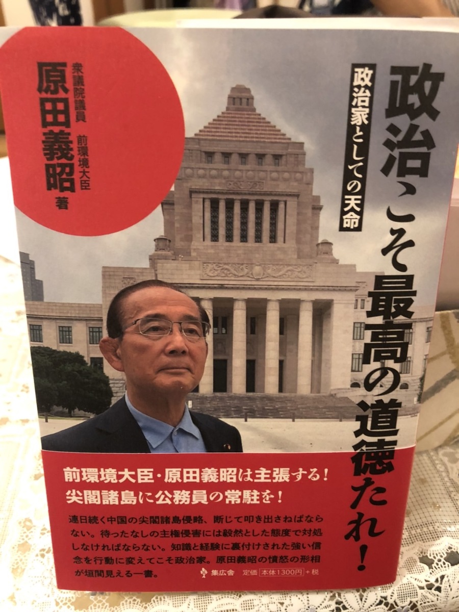 原田昭義前環境大臣の本をいただきましたので早速、本日は原田父ちゃんの本を読ませていただきました。