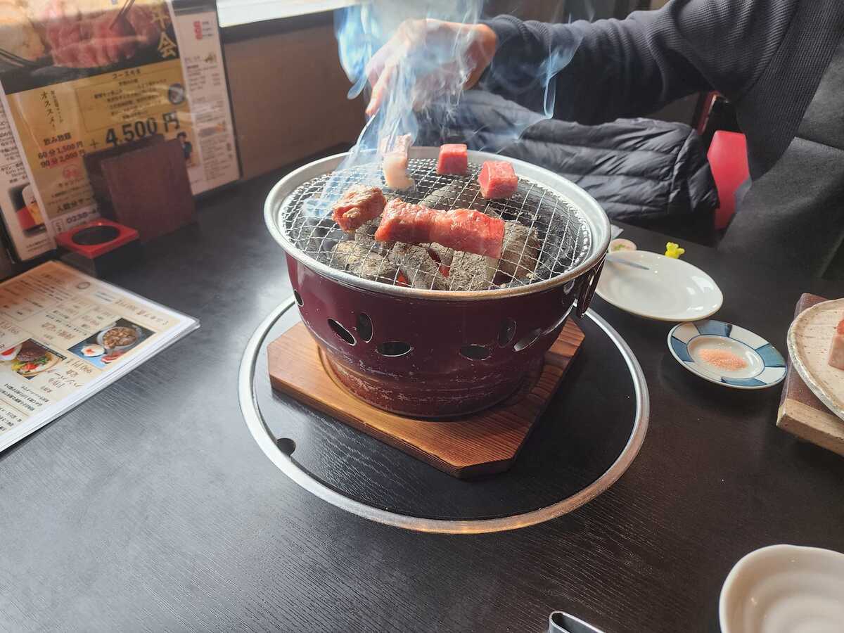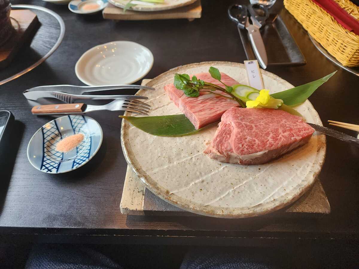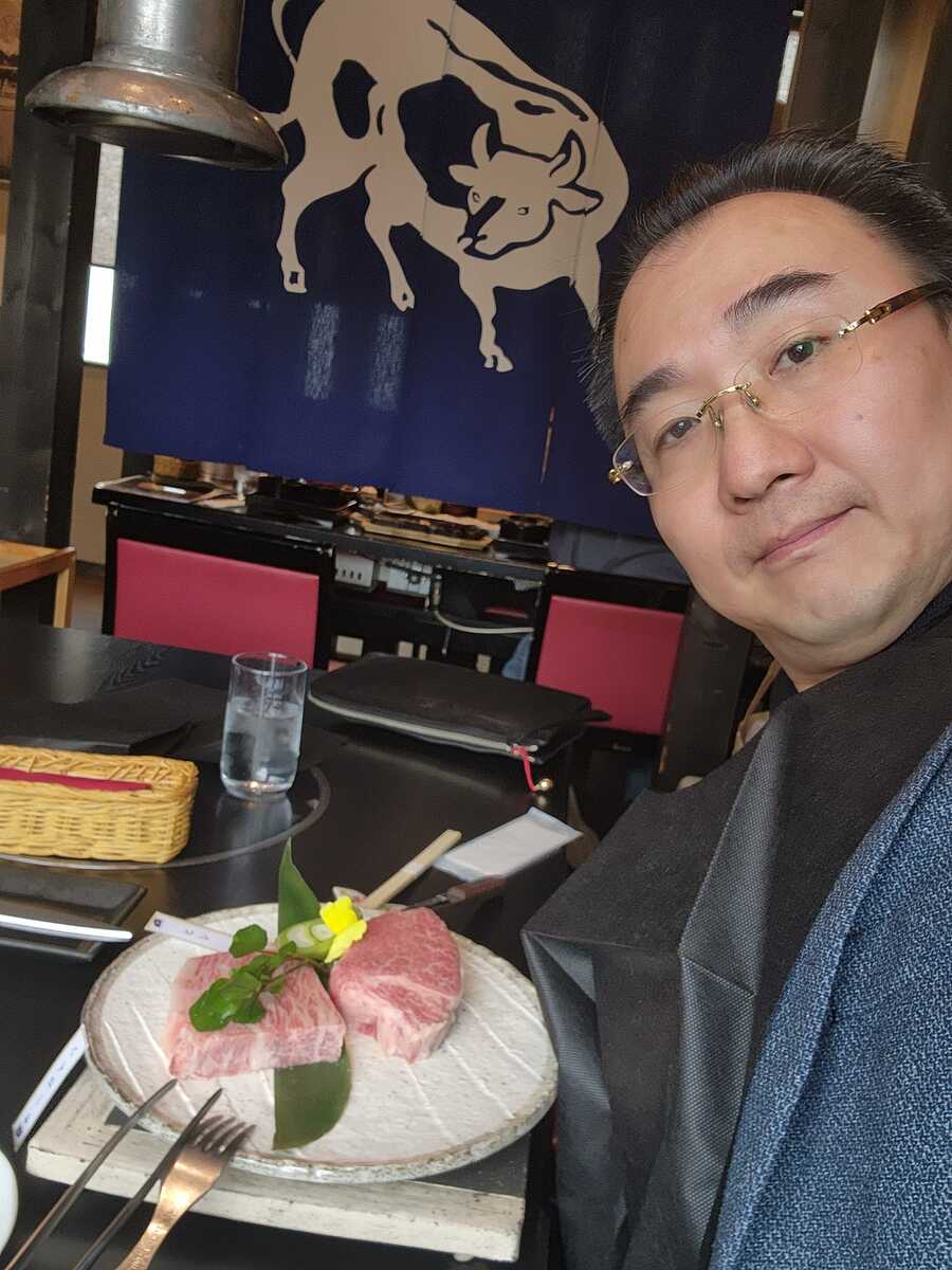 米澤駅の付近、佐藤社長が経営している高級米澤牛の店を食べにいきました。